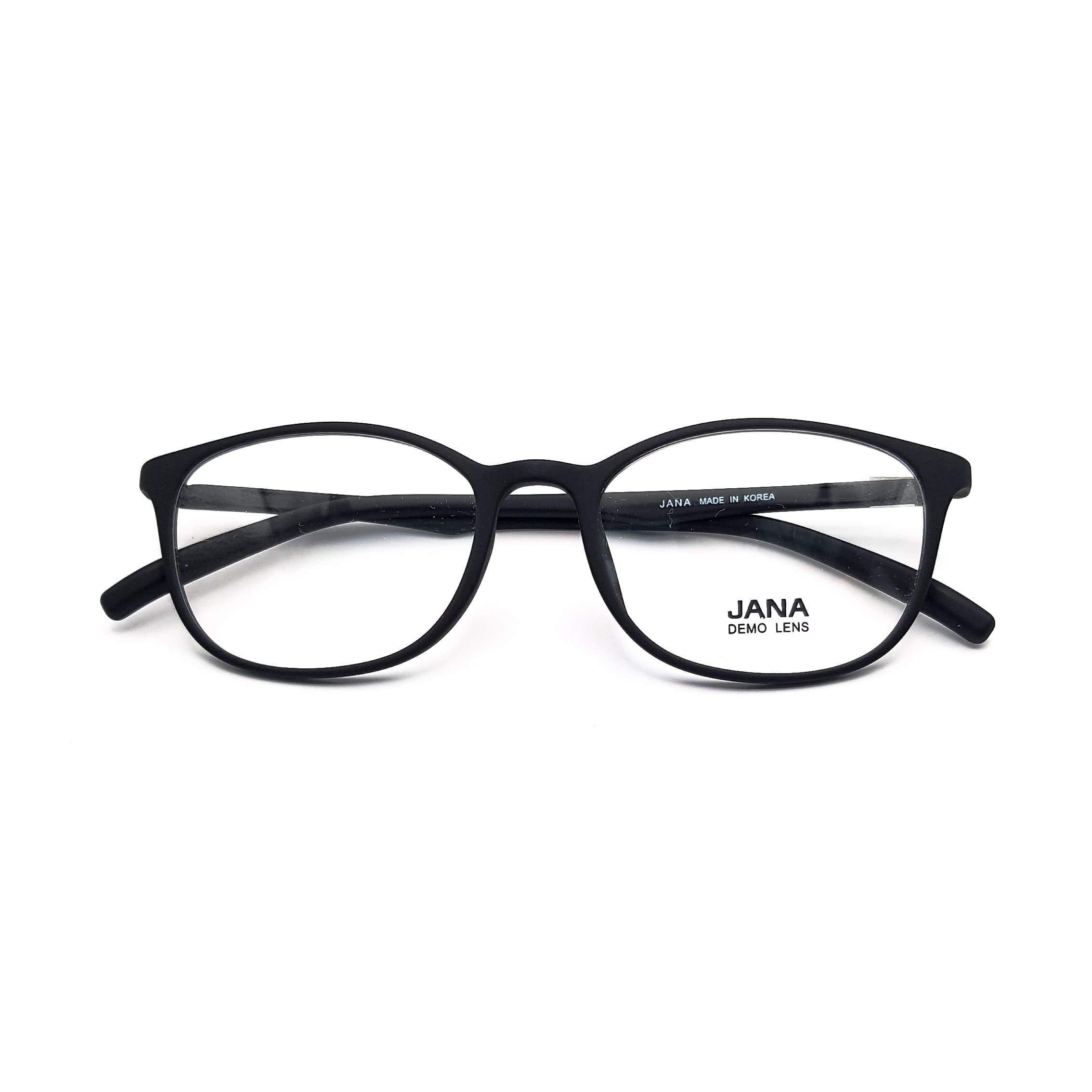 Montura JANA con diseño ovalado color negro mate. Permite mayor proteccion a tus ojos de la luz dañina incidente. Cuenta con un puente de 18 mm y brazos de 138 mm. Incluye 1 año de garantía directa con la marca.